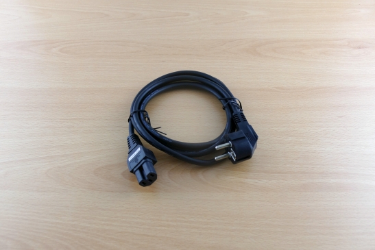 Das Ersatzkabel besitzt die spezielle Warmgerätekupplung mit einer Einkerbung und einen gewinkelten Schukostecker.